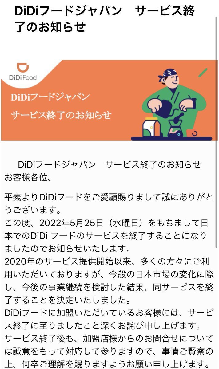 didi food 終了