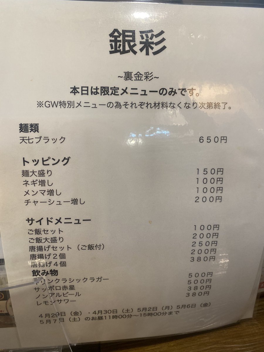 限定メニュー 銀彩さん