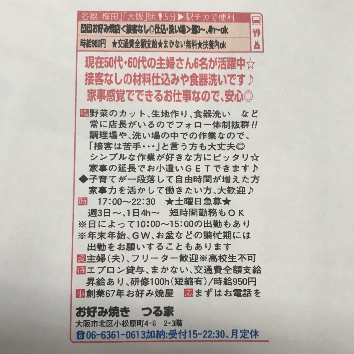 #スタッフ募集 #梅田求人 #大阪求人 #駅近